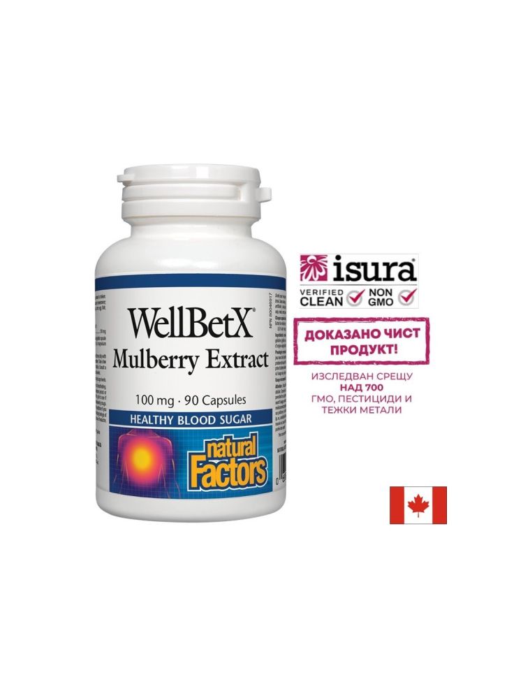 Екстракт от бяла черница 100 мг | Mulberry Extract | Natural Factors, 90 капс.