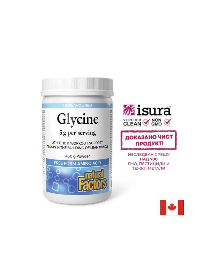 Глицинът е една от най-простите амикониселини в тялото, като най-много количество се намира в кожата, мускулите и съединителната тъкан. По-конкретно, той е прекурсор на колагена, откъдето произлизат и ползите му за кожата, ставите и сухожилията. Същевременно, без достатъчно количество глицин човешката мускулатура отслабва. За да се образува глицин, е необходим синтез на серин, холин и треонин, поради което в много случаи недостигът на аминокиселината се коригира и с паралелен прием на някои витамини от групата на В, включително и В комплекс.