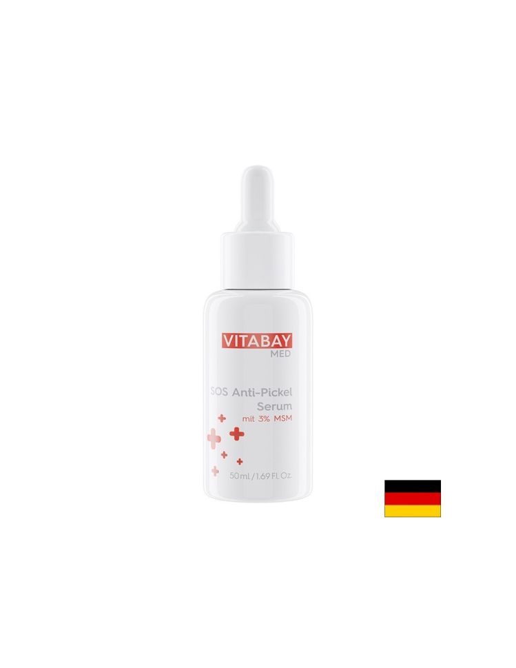 Vitabay ® MED SOS Anti-Pickel Serum - 50 ml - Niacinamid 5% Vitamin B3 Niacin, 3% MSM, Teebaumöl und Salicylsäure