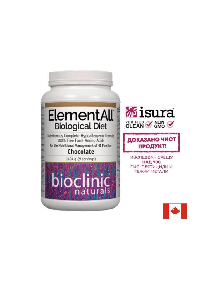 ElementAll™ Biological Diet е естествен продукт с приятен вкус на шоколад, допринасящ за нормалното функциониране на организма. Продуктът е подходящ за хора с нарушена храносмилателна функция.