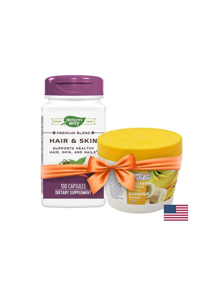 Формулата Коса и кожа на Nature's Way е специално балансирана смес от билки, ензими и други хранителни вещества за подпомагане на косата, кожата и ноктите. Тя е синергична комбинация от научните изследвания и традиционната билкова медицина и включва МСМ, глюкозамин и коприва. Съдържа ефективни дози МСМ, източник на сяра, който осигурява необходимите хранителни вещества за изграждането на протеини за косата и кожата. Глюкозаминът помага за изграждането на колаген и съединителна тъкан. Концентрираните ензими във формулата помагат за правилното разграждане на храната и позволяват доставянето на достатъчно хранителни вещества до крайниците. Биотинът е есенциално хранително вещество за образуването на коса, кожа и нокти. Формулата съдържа и смес от традиционни билки.