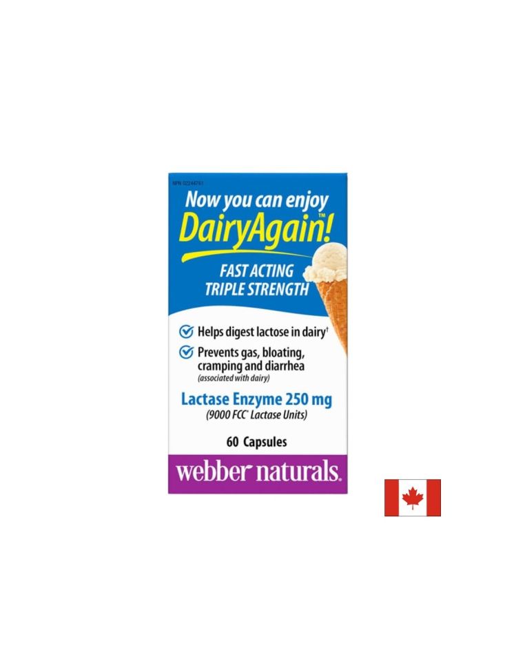 Лактаза ензим предлага бързо, превантивно облекчаване на типични симптоми на непоносимост към лактоза и съдейства за подобряване на храносмилането на храни, съдържащи лактоза (мляко и други млечни продукти). Продуктът на Webber Naturals съдържа 9000 единици FCC киселинна лактаза във всяка капсула.
