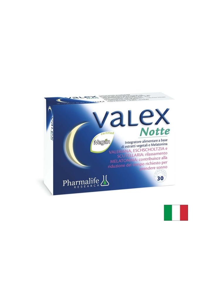 Валериана 500 mg + Мелатонин 1 mg + Калифорнийски мак – По-бързо заспиване и спокоен сън, Valex Notte, 30 таблетки