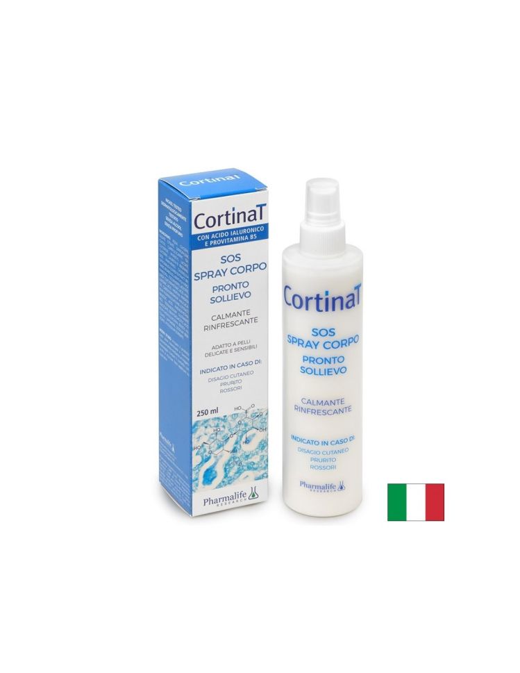 CortinaT SOS Body Spray е успокояващ спрей за тяло, подходящ при суха, раздразнена кожа и усещане за опъване. Формулата с хиалуронова киселина, провитамин B5, екстракт от невен и бисаболол подпомага хидратацията и намалява дискомфорта. Нанася се чрез напръскване върху зоната и леко масажиране до абсорбиране