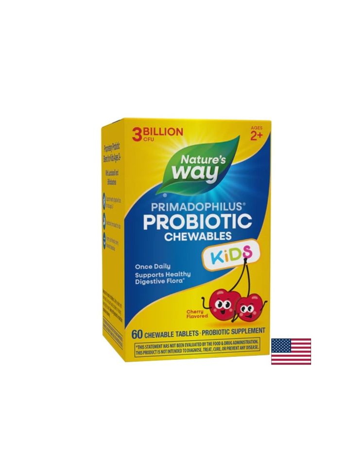 Пробиотик за деца с 3 милиарда жизнеспособни бактерии от клинично проучени щамове Lactobacillus и Bifidobacterium. Подпомага баланса на чревната микрофлора, нормалната функция на стомашно-чревния тракт и естествената защита на организма. Дъвчащи таблетки с приятен вкус на череша – удобни за прием за деца от 2 до 12 години