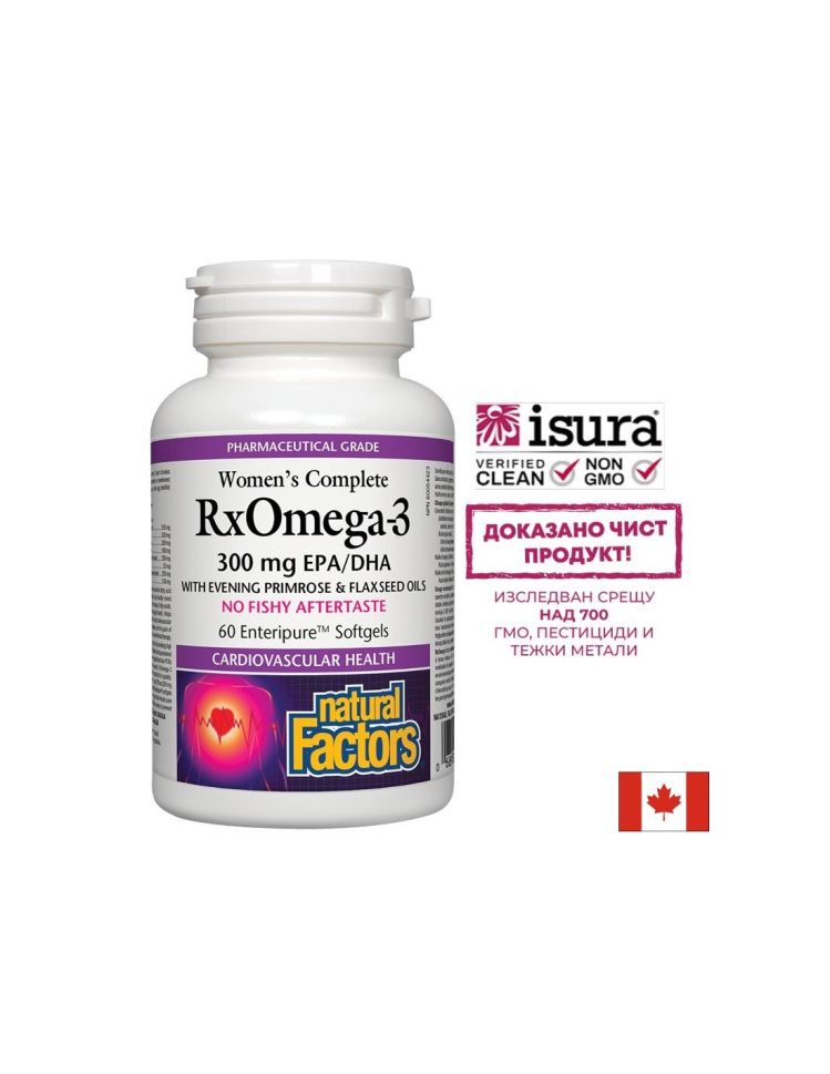 RxОмега-3 за жени - Рибено масло, ленено масло и масло от вечерна иглика, 60 софтгел капсули Natural Factors