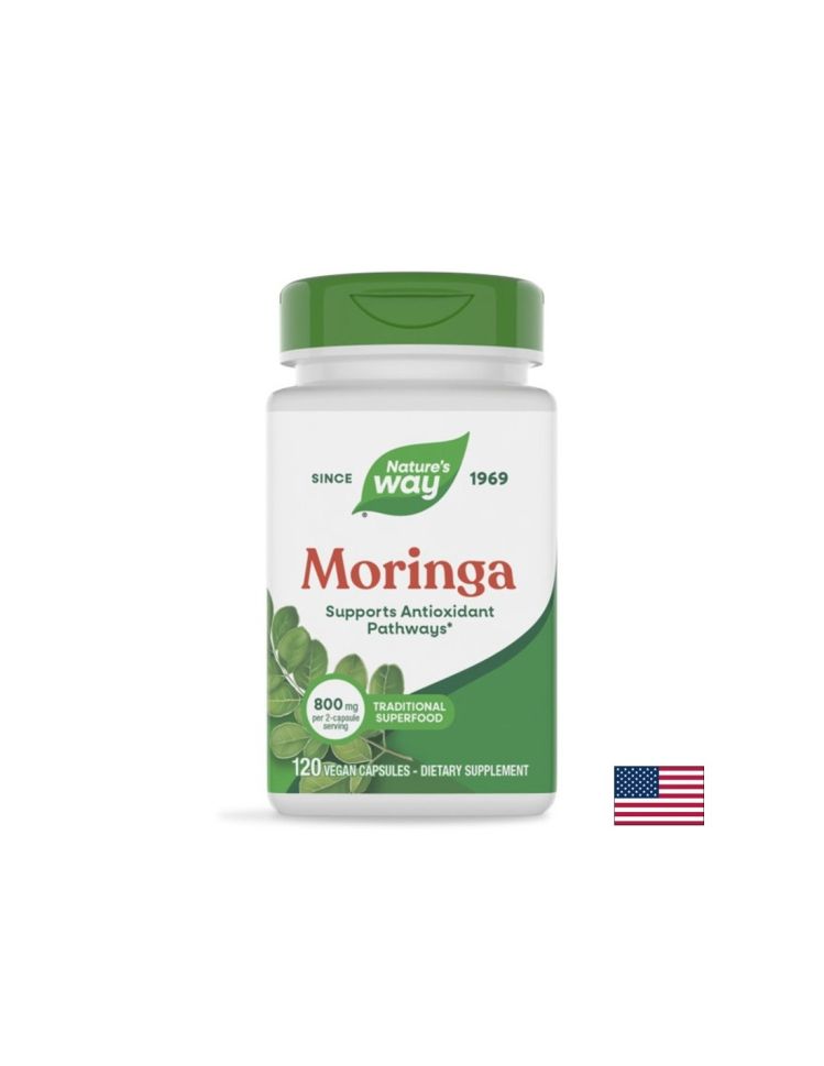 Moringa на американската фирма Nature’s Way е натурална хранителна добавка, която съдържа листа от растението Моринга - естествен източник на витамини, минерали, аминокиселини и биоактивни съединения с мощно антиоксидантно действие. Оказва благоприятен ефект върху функциите на сърдечно-съдовата система, подпомага поддържането на нормални нива на кръвната захар и липидния профил и допринася за защитата на клетките от вредното действие на оксидативния стрес. Спомага за регулиране нивата на холестерола и триглицеридите в кръвта. Освен това повлиява благоприятно върху енергийния баланс, метаболизма и общото състояние на организма, като подпомага жизнеността и тонуса.