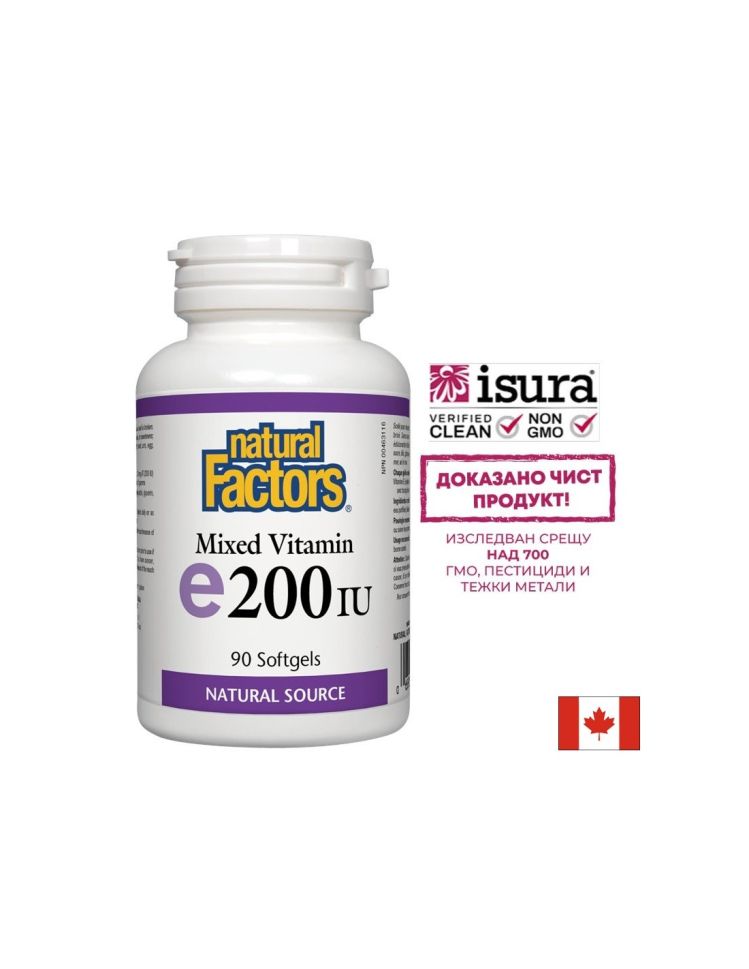 Витамин Е на Natural Factors е естествен източник на витамин Е, мощен антиоксидант, който предлага защита от свободните радикали и е важен за поддържане на доброто здраве. Витамин Е подпомага функционирането на сърдечно-съдовата система, като блокира образуването на вещества, които могат да увеличат риска от атеросклероза.