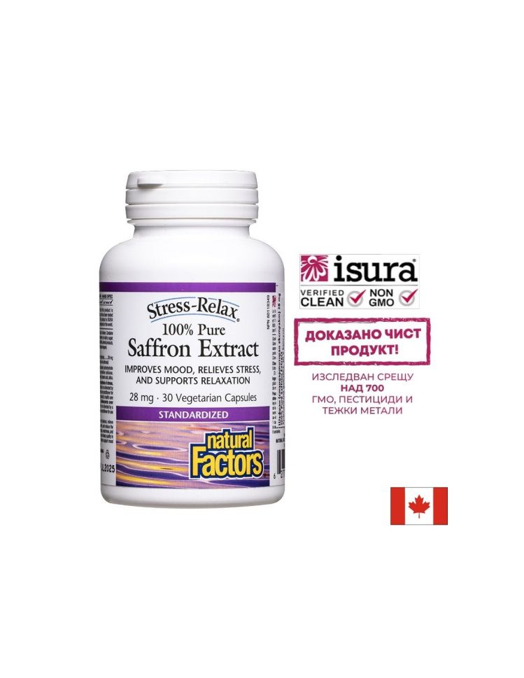 Pure Saffron Extract на канадската компания Natural Factors е натурален продукт, допринасящ за поддържане на нормалното състояние на нервната система.