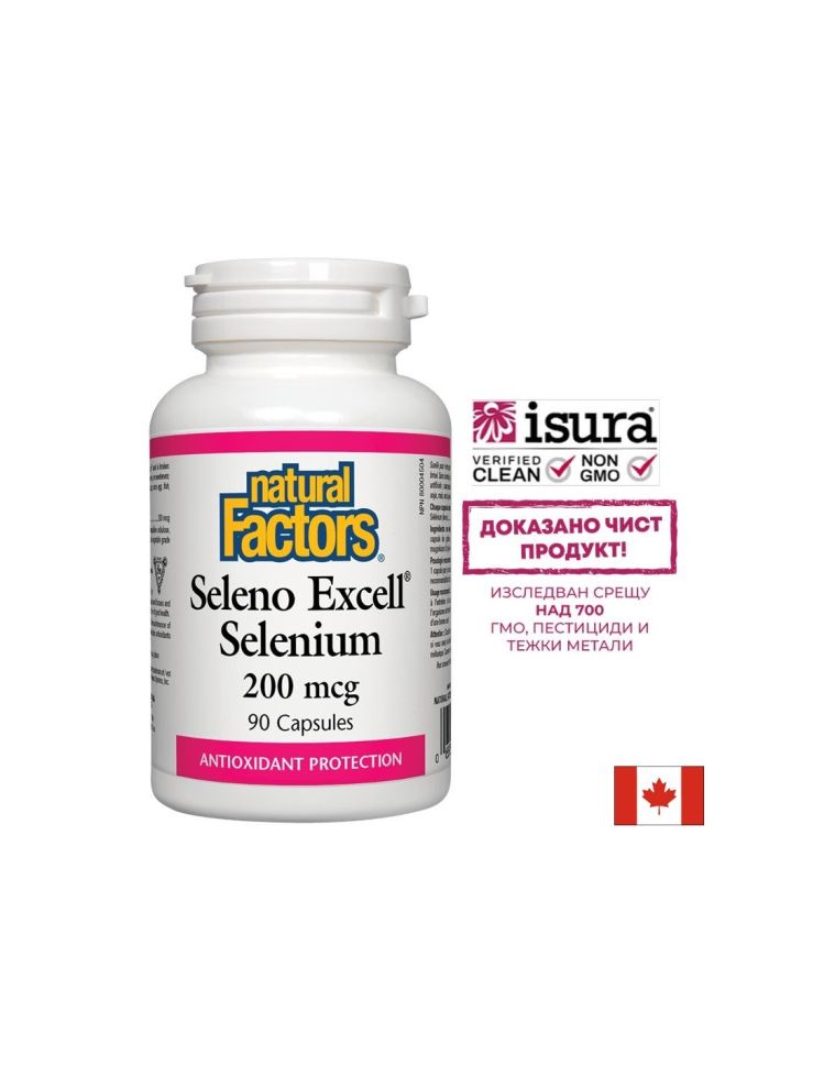 Seleno Excell селенът на Natural Factors представлява органично свързани селениеви дрожди, които увеличават биодостъпността на селена в човешкото тяло. Селенът е минерална добавка за поддържане доброто здраве на клетките и целия организъм. Той е важен антиоксидант, чиято основна функция е да блокира окислението на мазнините в тялото.
