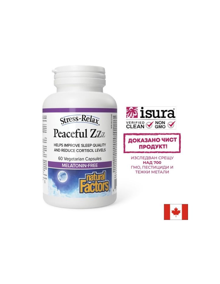 Peaceful Zzz Stress-Relax на канадската марка Natural Factors е натурален продукт допринасящ за здрав и спокоен сън.