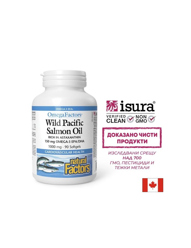 Рибено масло от дива сьомга 1000 мг | Wild Salmon Oil | Natural Factors, 90 софтгел капс.